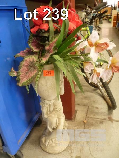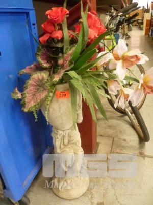 GARDEN STATUE POT AND IMITATION FLOWERS