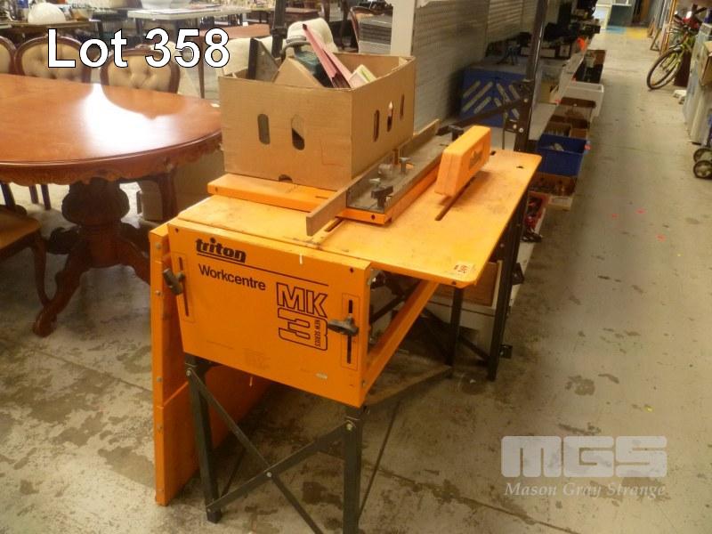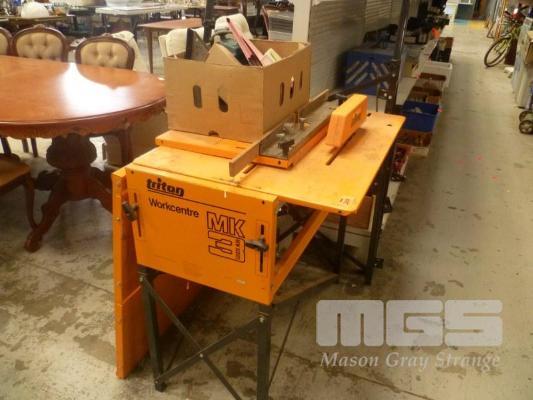 TRITON MK3 "NEW SERIES" WORK CENTRE WITH EXTENSION TABLE AND ROUTER ATTACHMENT. INCLUDES MAKITA ROUTER (MODEL: 36000BR)