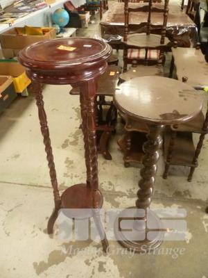 MAHOGANY JARDINIERE, BARLEY TWIST WITH TIMBER PEDESTAL, BARLEY TWIST
