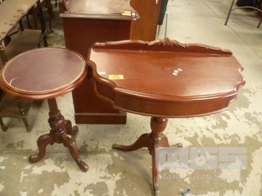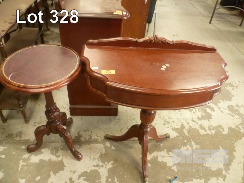 MAHOGANY HALL TABLE & TIMBER WINE TABLE WITH LEATHER INLAY