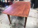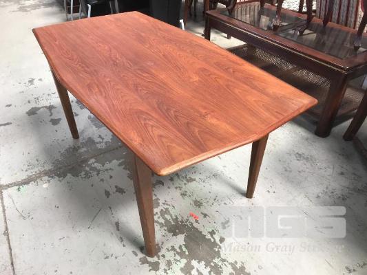 TEAK MID CENTURY DINING TABLE, T.H BROWN OCTAGONAL SHAPED WITH T.H BROWN BUTTON TO BASE