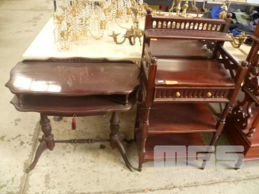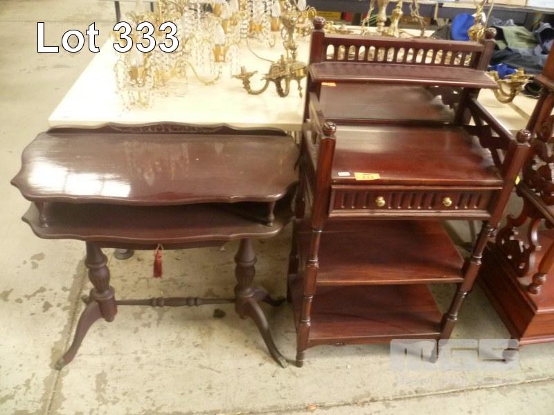 MAHOGANY SHELF UNIT, SINGLE DRAWER WITH ROSEWOOD HALL TABLE, STRETCHER BASE