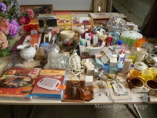 ASSORTED COSMETICS, KITCHENWARE, GLASSWARE, ETC, 1 x TABLE