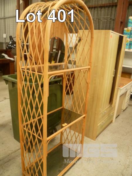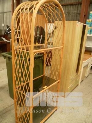ARCHED, CANE SHELF UNIT, GLASS SHELVES