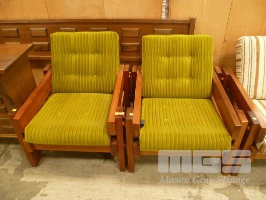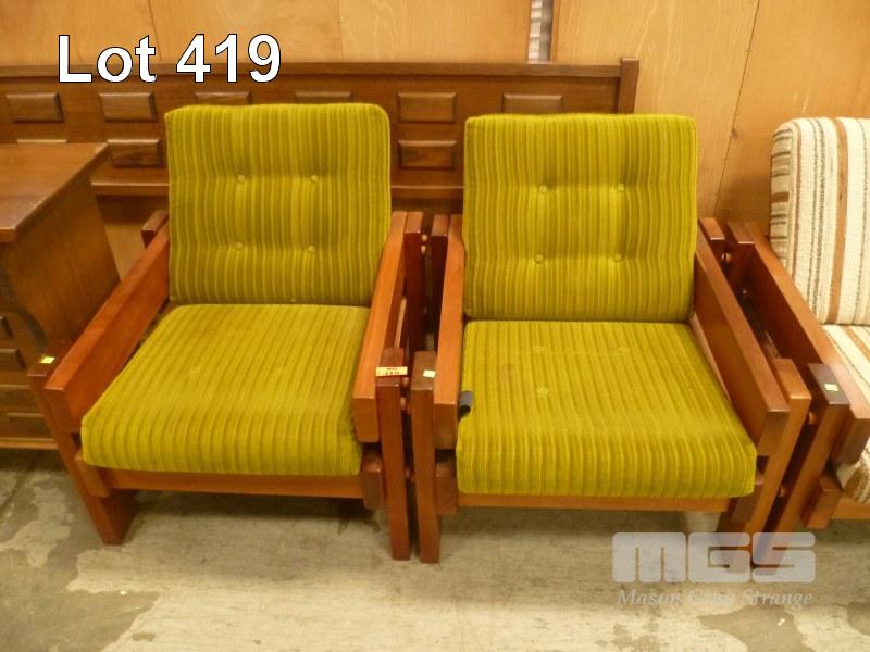 PAIR OF RUSTIC TIMBER FRAMED ARMCHAIRS