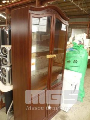 TIMBER GLASS FRONTED DISPLAY CABINET, 2 DOOR GLASS DISPLAY SECTION WITH 2 DOOR UNDERSTORAGE