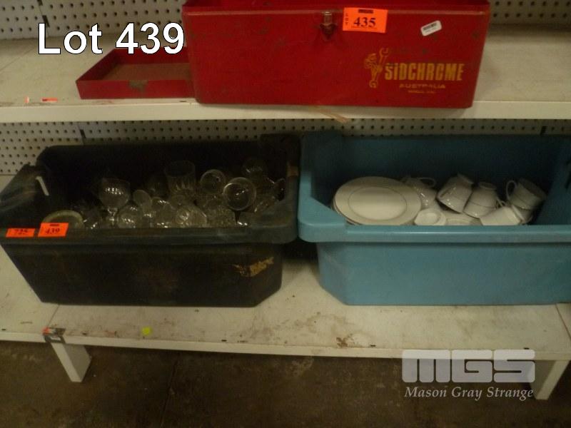 DINNERWARE, GLASSWARE, COOKWARE, ETC, 2 x TUBS