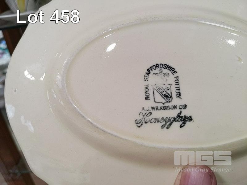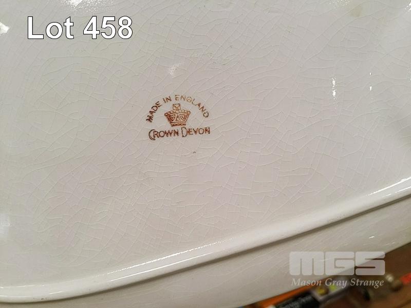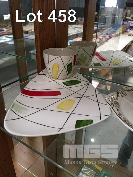 5 x ITEMS OF ENGLISH PORCELAIN INCLUDING CHAMBER POT AND RETRO TEA SET.