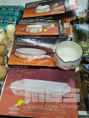 4 x ITEMS OF "COUNTRYSIDE COLLECTION" COOKWARE AND "COUNTRYSIDE STONEWARE COLLECTION" BAKING TRAY. ALL NEW IN BOX OR UNUSED.