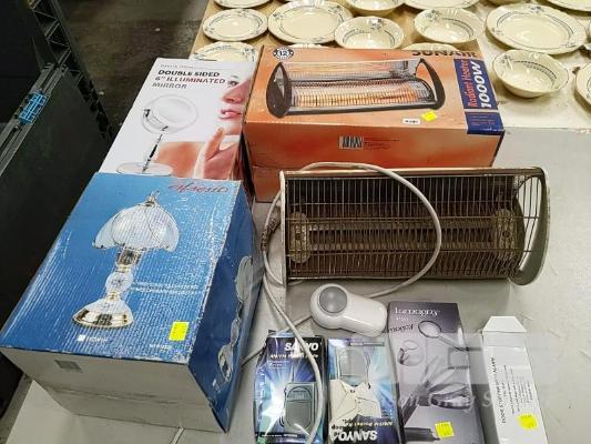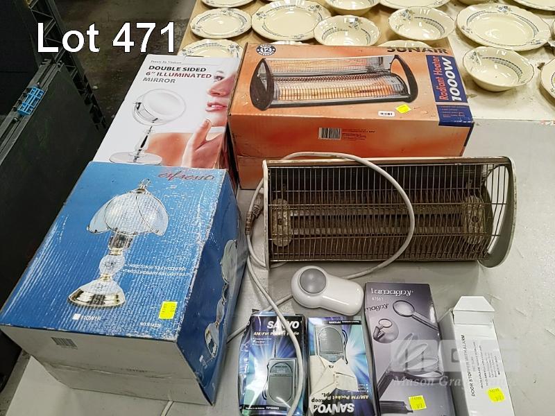 HOUSEHOLD ELECTRICAL INCLUDING RADIANT HEATERS, TABLE LAMP, ILLUMINATED COSMETICS MIRROR, PORTABLE AM/FM RADIOS ETC