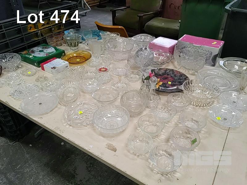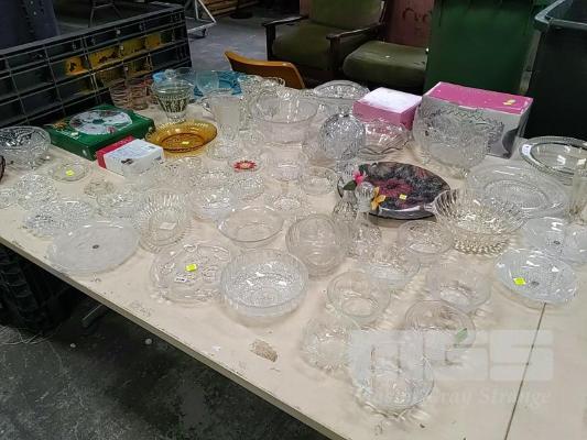 LARGE COLLECTION OF GLASS & CRYSTAL BOWLS, PLATTERS, TRAYS, TUMBLERS ETC