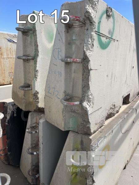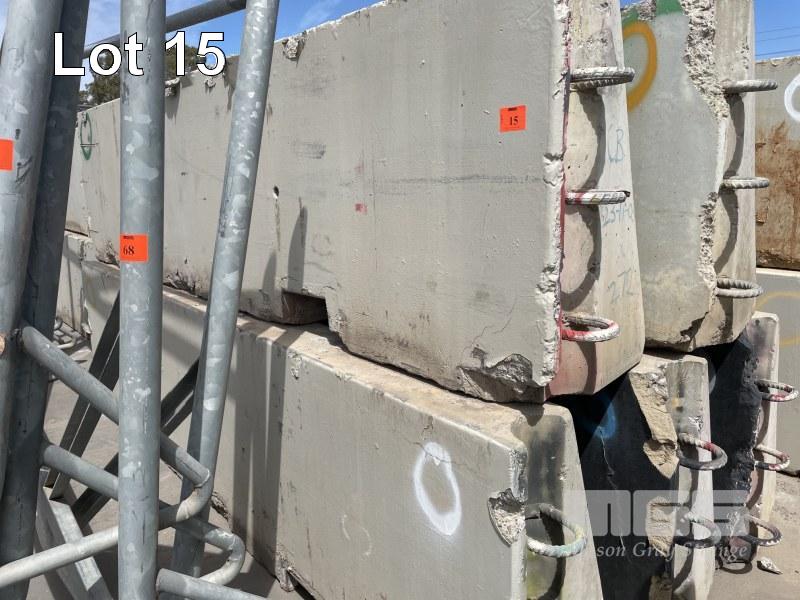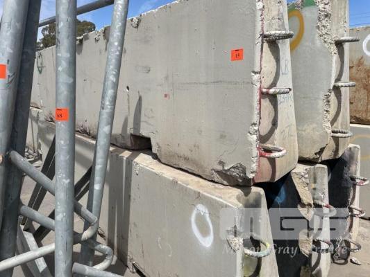 5 x RACE TRACK CONCRETE BARRIERS COMPRISING 5 x CORNER BARRIERS 4000 x 1000mm (NOTE: ALL HAVE MINOR EDGE DAMAGE) (TO MAKE THEM STRAIGHT, A 50mm EDGE NEEDS TO BE CUT OFF)