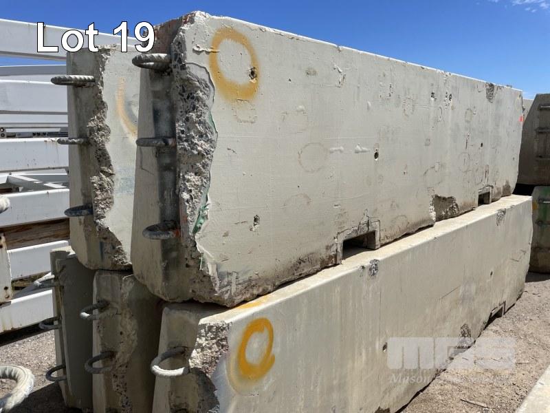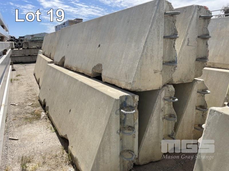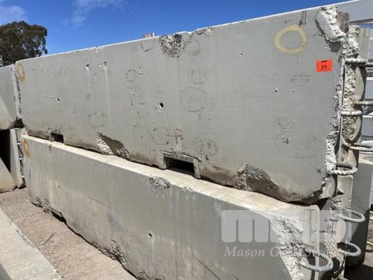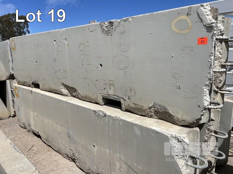 5 x RACE TRACK CONCRETE BARRIERS COMPRISING 5 x CORNER BARRIERS 4000 x 1000mm (NOTE: ALL HAVE MINOR EDGE DAMAGE) (TO MAKE THEM STRAIGHT, A 50mm EDGE NEEDS TO BE CUT OFF)