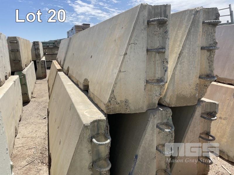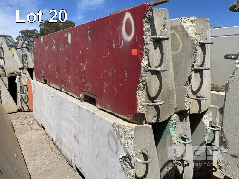 5 x RACE TRACK CONCRETE BARRIERS COMPRISING 5 x CORNER BARRIERS 4000 x 1000mm (NOTE: ALL HAVE MINOR EDGE DAMAGE) (TO MAKE THEM STRAIGHT, A 50mm EDGE NEEDS TO BE CUT OFF)