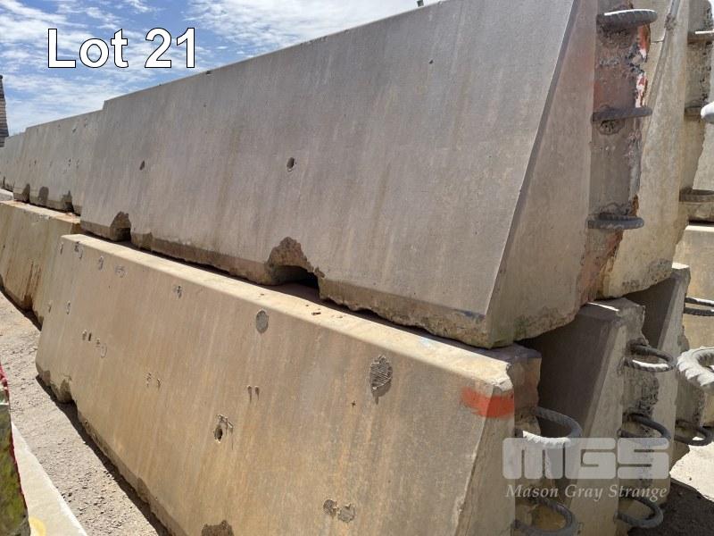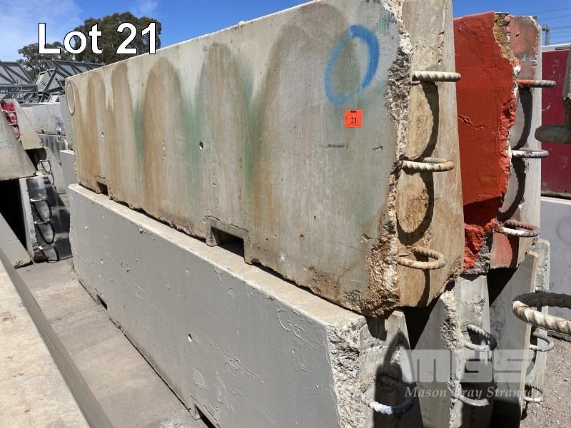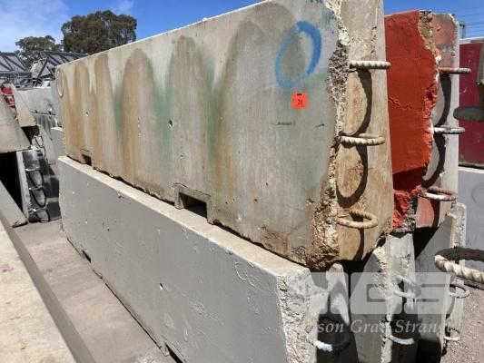 5 x RACE TRACK CONCRETE BARRIERS COMPRISING 5 x CORNER BARRIERS 4000 x 1000mm (NOTE: ALL HAVE MINOR EDGE DAMAGE) (TO MAKE THEM STRAIGHT, A 50mm EDGE NEEDS TO BE CUT OFF)