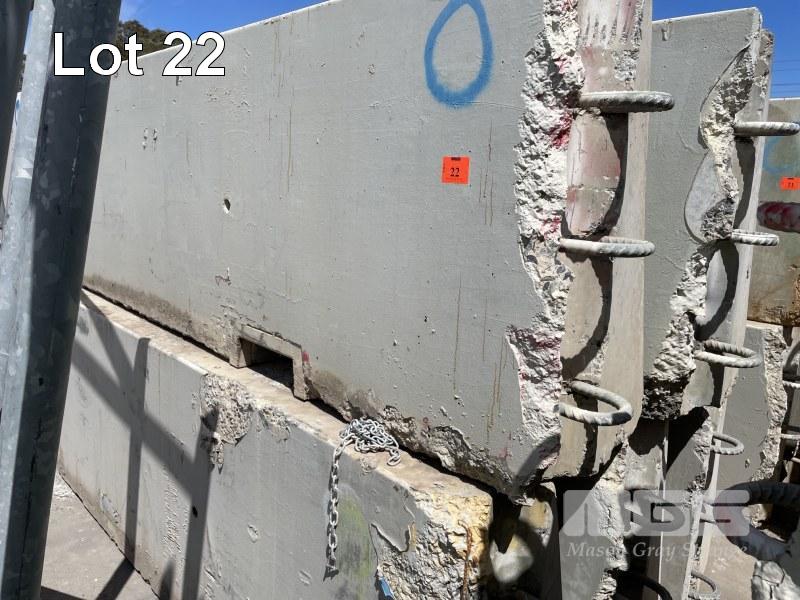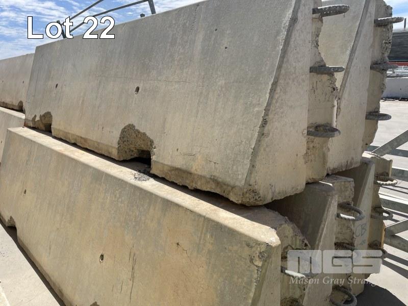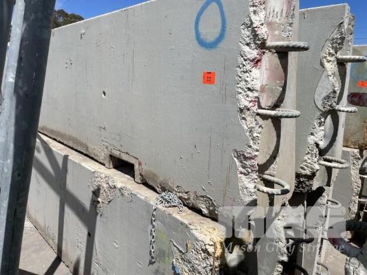 5 x RACE TRACK CONCRETE BARRIERS COMPRISING 5 x CORNER BARRIERS 4000 x 1000mm (NOTE: ALL HAVE MINOR EDGE DAMAGE) (TO MAKE THEM STRAIGHT, A 50mm EDGE NEEDS TO BE CUT OFF)