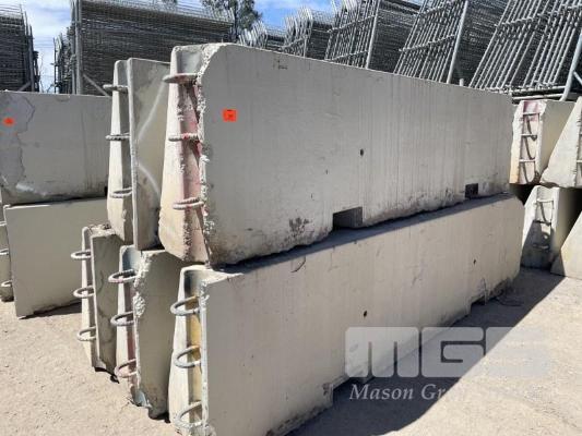 5 x RACE TRACK CONCRETE BARRIERS COMPRISING 5 x CORNER BARRIERS 4000 x 1000mm (NOTE: ALL HAVE MINOR EDGE DAMAGE) (TO MAKE THEM STRAIGHT, A 50mm EDGE NEEDS TO BE CUT OFF)