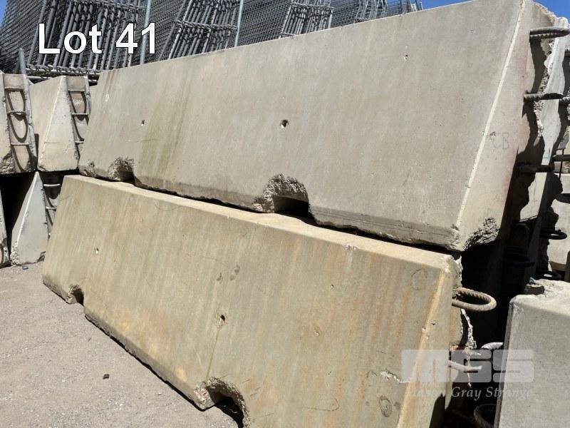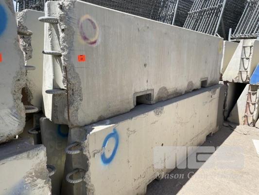 5 x RACE TRACK CONCRETE BARRIERS COMPRISING 5 x CORNER BARRIERS 4000 x 1000mm (NOTE: ALL HAVE MINOR EDGE DAMAGE) (TO MAKE THEM STRAIGHT, A 50mm EDGE NEEDS TO BE CUT OFF)