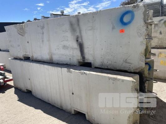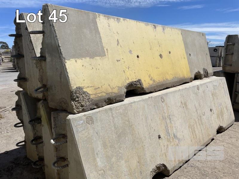 5 x RACE TRACK CONCRETE BARRIERS COMPRISING 5 x CORNER BARRIERS 4000 x 1000mm (NOTE: ALL HAVE MINOR EDGE DAMAGE) (TO MAKE THEM STRAIGHT, A 50mm EDGE NEEDS TO BE CUT OFF)