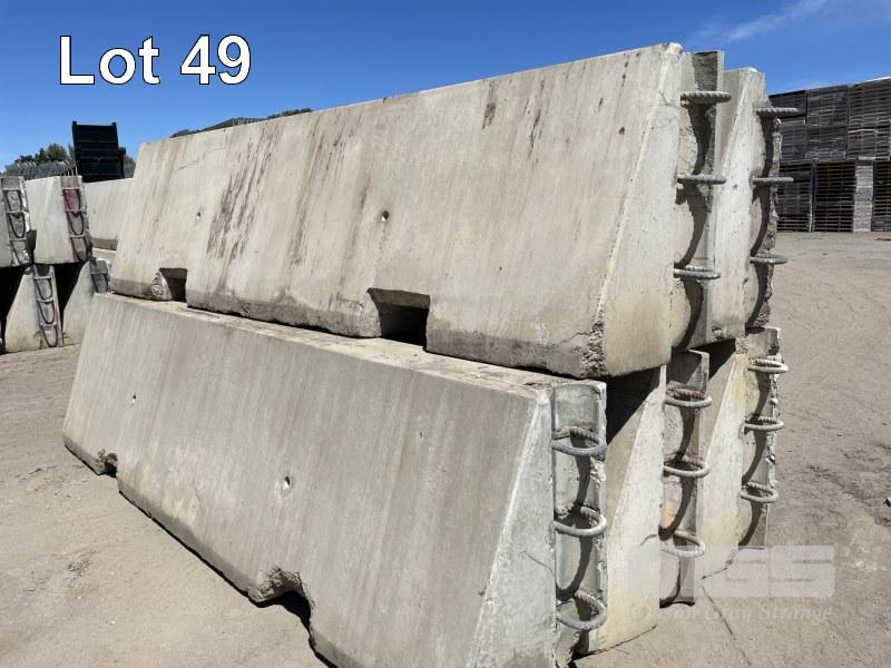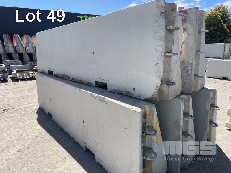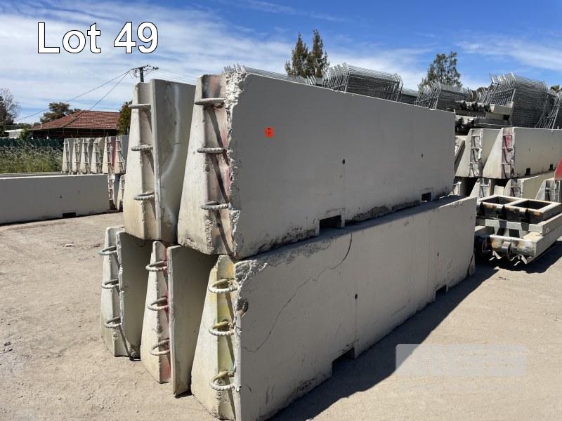 5 x RACE TRACK CONCRETE BARRIERS COMPRISING 5 x CORNER BARRIERS 4000 x 1000mm (NOTE: ALL HAVE MINOR EDGE DAMAGE) (TO MAKE THEM STRAIGHT, A 50mm EDGE NEEDS TO BE CUT OFF)