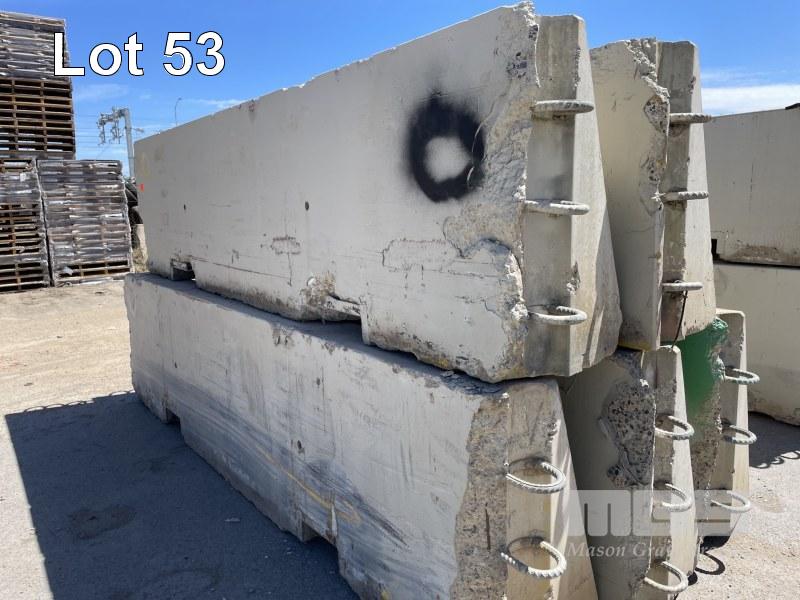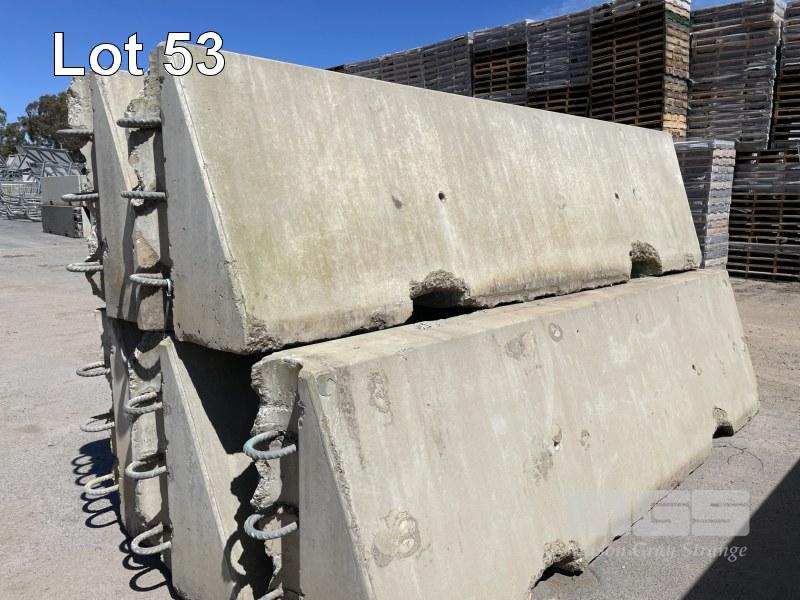 5 x RACE TRACK CONCRETE BARRIERS COMPRISING 5 x CORNER BARRIERS 4000 x 1000mm (NOTE: ALL HAVE MINOR EDGE DAMAGE) (TO MAKE THEM STRAIGHT, A 50mm EDGE NEEDS TO BE CUT OFF)