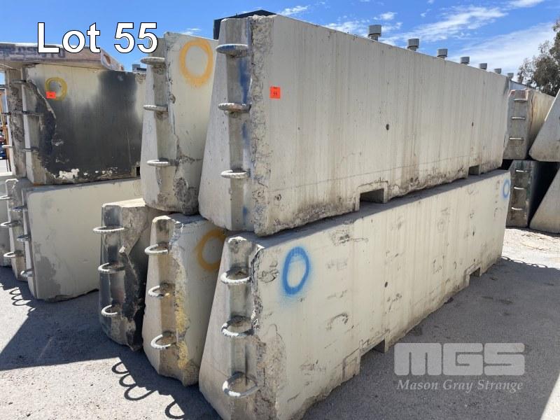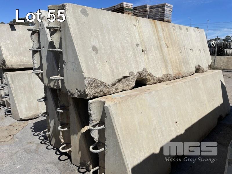 5 x RACE TRACK CONCRETE BARRIERS COMPRISING 5 x CORNER BARRIERS 4000 x 1000mm (NOTE: ALL HAVE MINOR EDGE DAMAGE) (TO MAKE THEM STRAIGHT, A 50mm EDGE NEEDS TO BE CUT OFF)