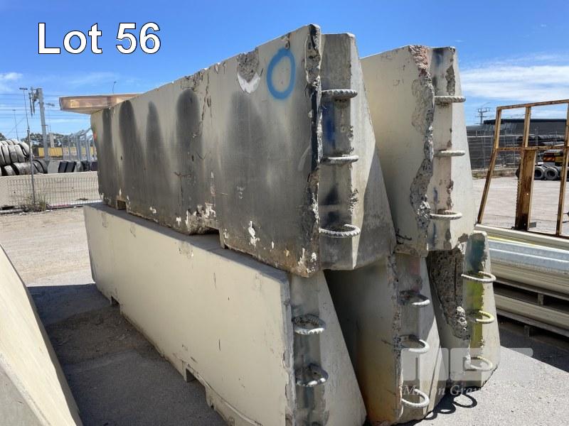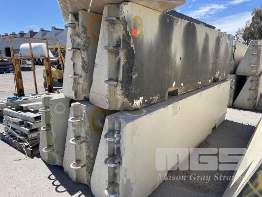 5 x RACE TRACK CONCRETE BARRIERS COMPRISING 5 x CORNER BARRIERS 4000 x 1000mm (NOTE: ALL HAVE MINOR EDGE DAMAGE) (TO MAKE THEM STRAIGHT, A 50mm EDGE NEEDS TO BE CUT OFF)