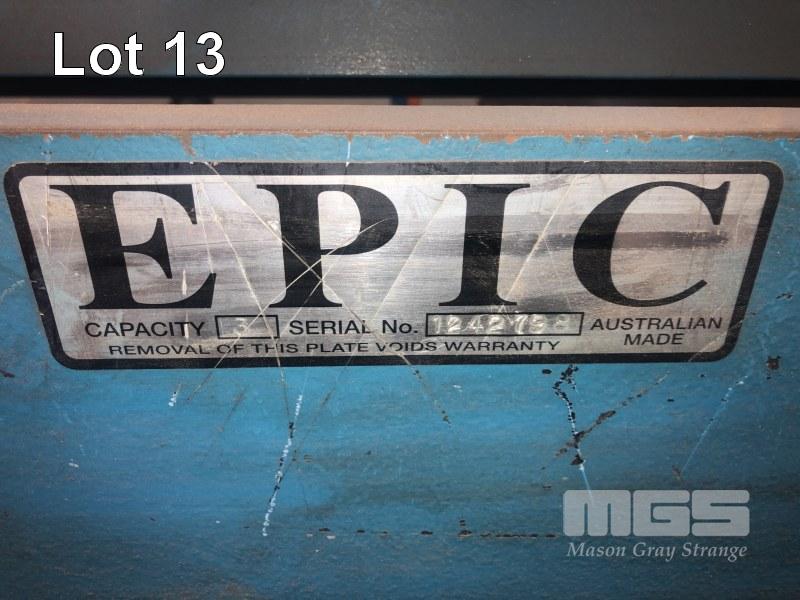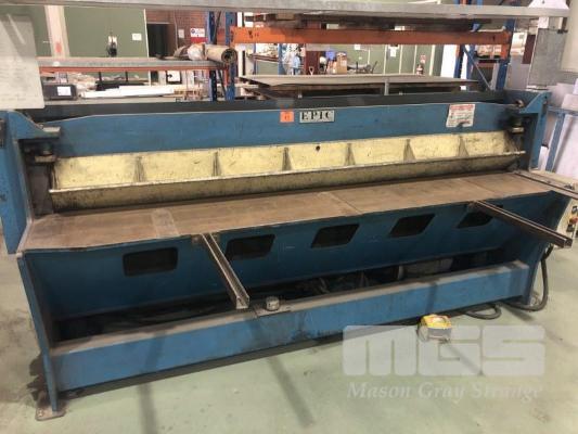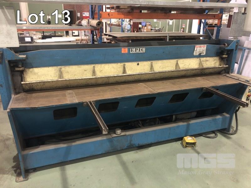 HYDRAULIC GUILLOTINE, EPIC, 8' S/NO: 1242795 2440 x 3mm WITH OVERHEAD LED LIGHTING PEDAL CONTROL E.S. FITTED , 415 VOLT.