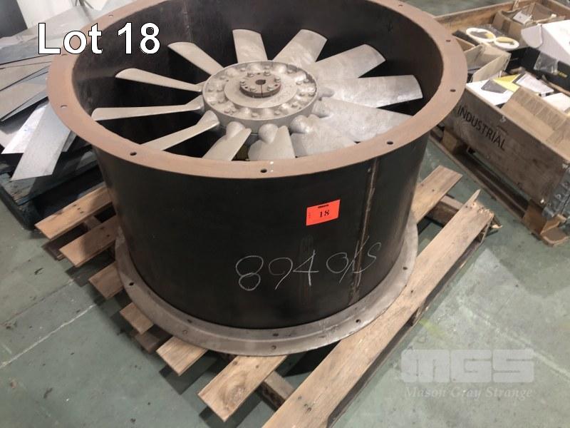 LARGE EXHAUST FAN, 880mm DIAMETER, 12 x CAST ALLOY ADJUSTABLE BLADES, 415V MOTOR