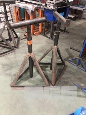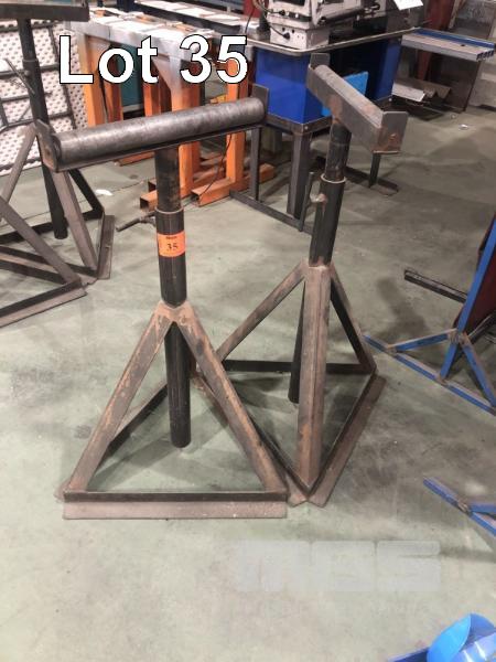 2 x HEAVY DUTY IN/OUT FEED ROLLER WORK STANDS, 1200mm MAX HEIGHT 400mm ROLLERS