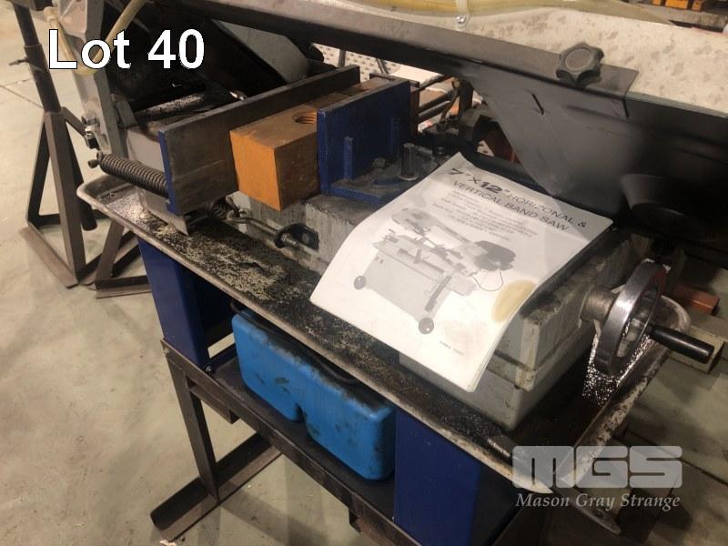 HORIZONTAL BANDSAW, TRADEMASTER 12 x 7", 240V VARIABLE FEED & COOLANT SYSTEM ON STAND