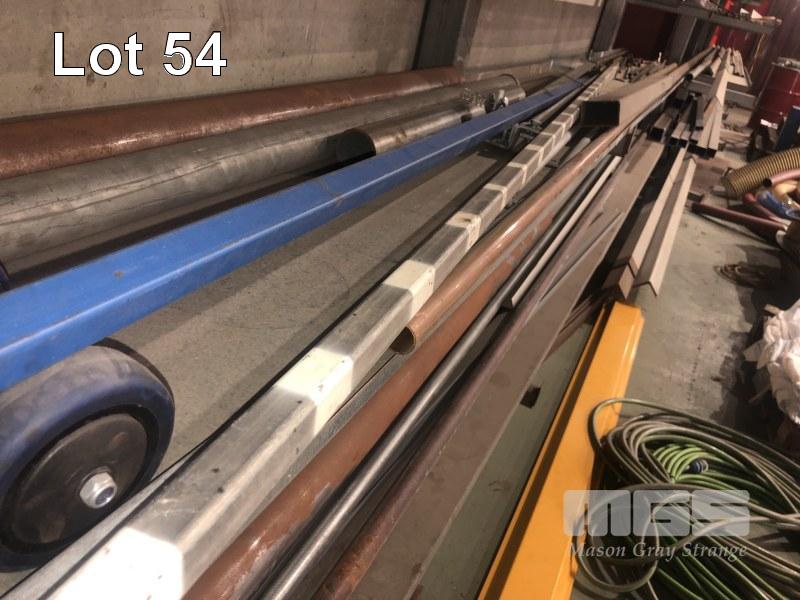 ASSORTED LENGTHS STEEL, TUBING, ANGLE IRON, RHS, COPPER PIPE, STEEL PLATE OFFCUTS & 2 x LENGTH ROUND SOLID AS MARKED 2 SHELVES