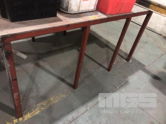 PLATE TOP WELDING BENCH, 1900 x 1240mm, 3mm TOP WITH SLIDING RAIL IRON TOOLING & 100mm VICE
