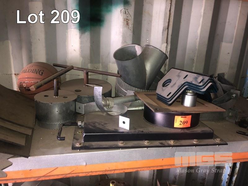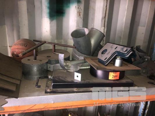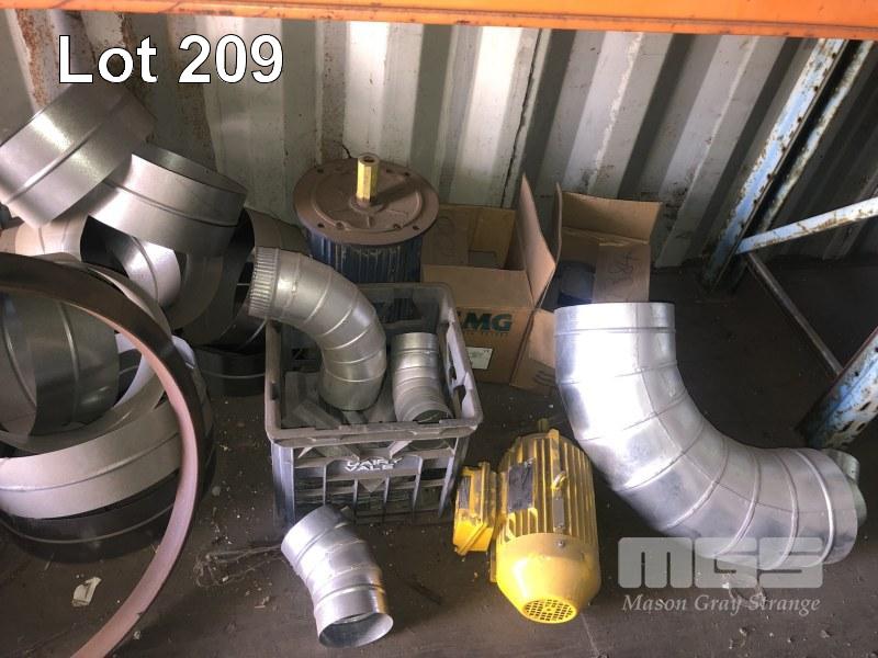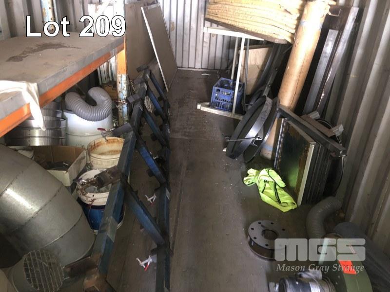 ASSORTED DUCT WORK, ELECTRICAL MOTORS, AIR VENTS, BOX STEEL FRAMES, JIGS, (REMAINING CONTENTS OF CONTAINER)