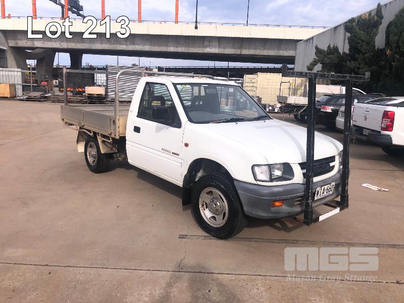 1999 HOLDEN RODEO LX TRAY TOP UTILITY 4x2 REG: WIA 660 VIN: JAATFR25HX7111071 ODO: 320,806kms SHOWING V6, 5 SPEED MANUAL TRANSMISSION, PETROL, 4x2 LADDER RACK, TOW BAR (WITH PAPERS, WITH 1 KEY/S)