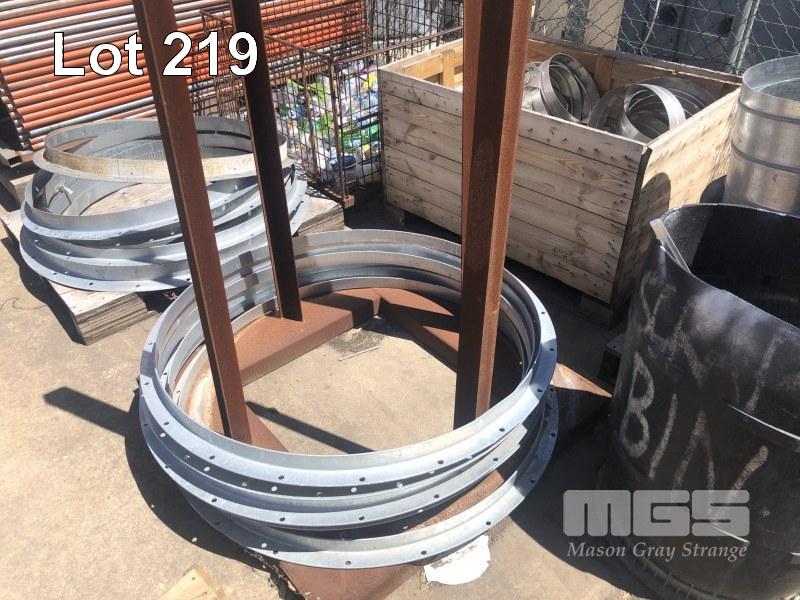 ASSORTED DUCT, GALV & STAINLESS STEEL FLANGES, SECTIONS, DUCT COMPONENTS, ETC