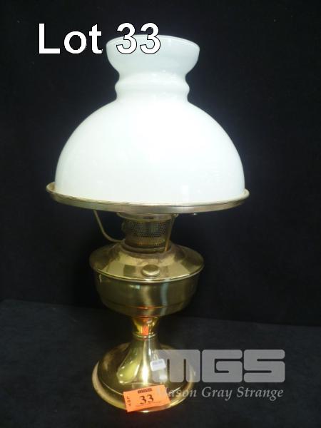 ALADDIN KERO LAMP WITH MILK GLASS SHADE, 47cm (NO CHIMNEY GLASS)