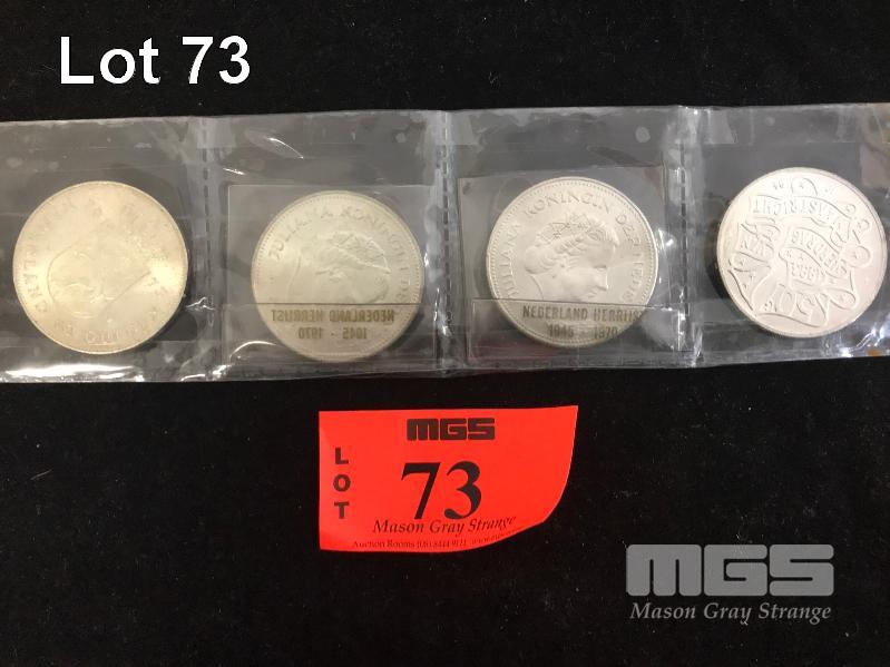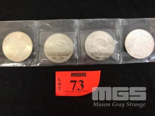 4 X NETHERLANDS SILVER GULDEN COINS 2 X 1970 10 GULDEN, 1 X 1973 10 GULDEN, 1 X 1993 50 GULDEN