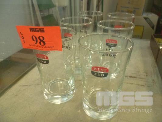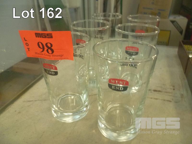 SET OF 6 WEST END DRAUGHT 200 ML BUTCHER GLASSES, NEW OLD STOCK
