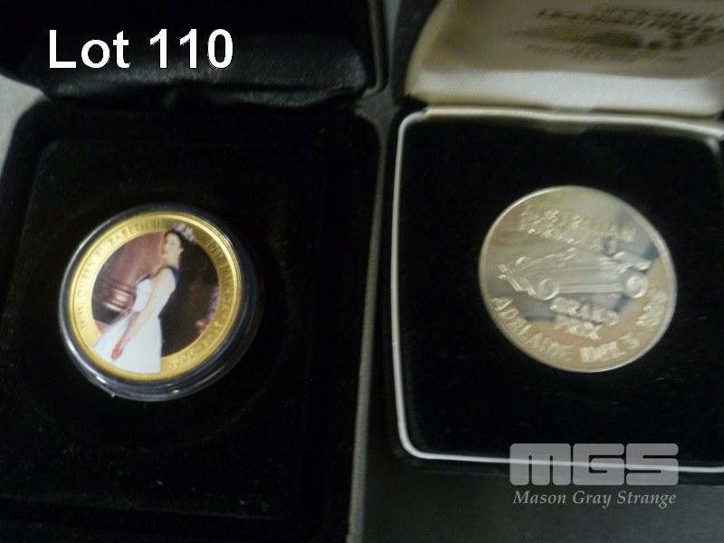 AUSTRALIA, 2006, 'H.M. QUEEN ELIZABETH II 80th BIRTHDAY 21-4-2006' 50c PROOF COIN, & AUSTRALIAN FORMULA 1 GRAND PRIX, NOV 3 1985 SILVER MEDALLION, .925 SILVER