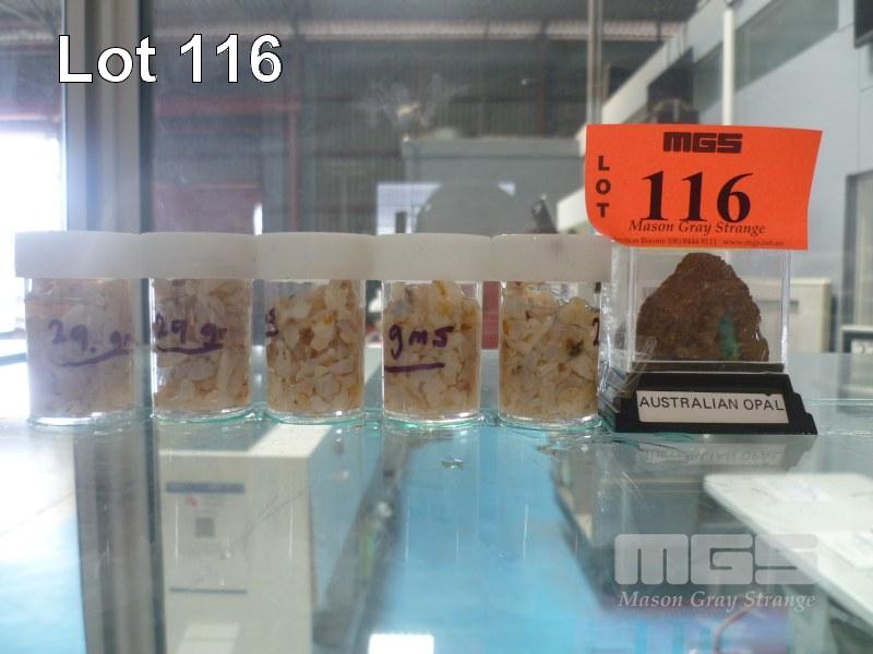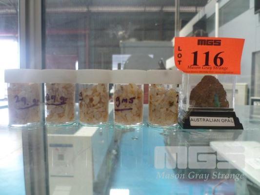 QUEENSLAND BOULDER OPAL SPECIMEN & 5 X SMALL CONTAINERS OF OPAL CHIPS