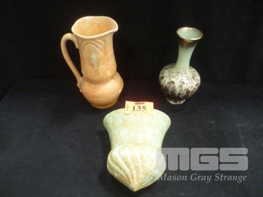 BESWICK PITCHER, GLAZED VASE, MADE IN GERMANY 565118 & WALL POCKET