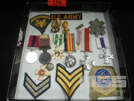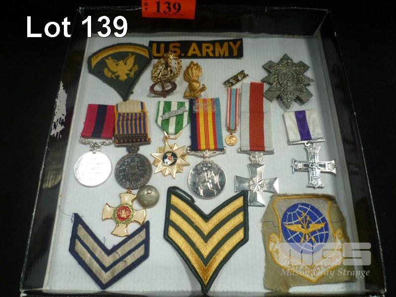 ASSORTED MILITARY CLOTH BADGES, REPLICA MEDALS, ETC