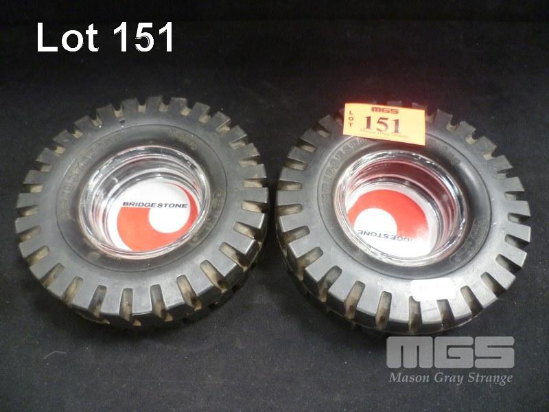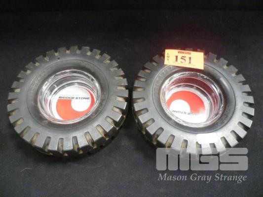 2 x BRIDGESTONE TYRE ASHTRAYS, 17cm DIAMETER