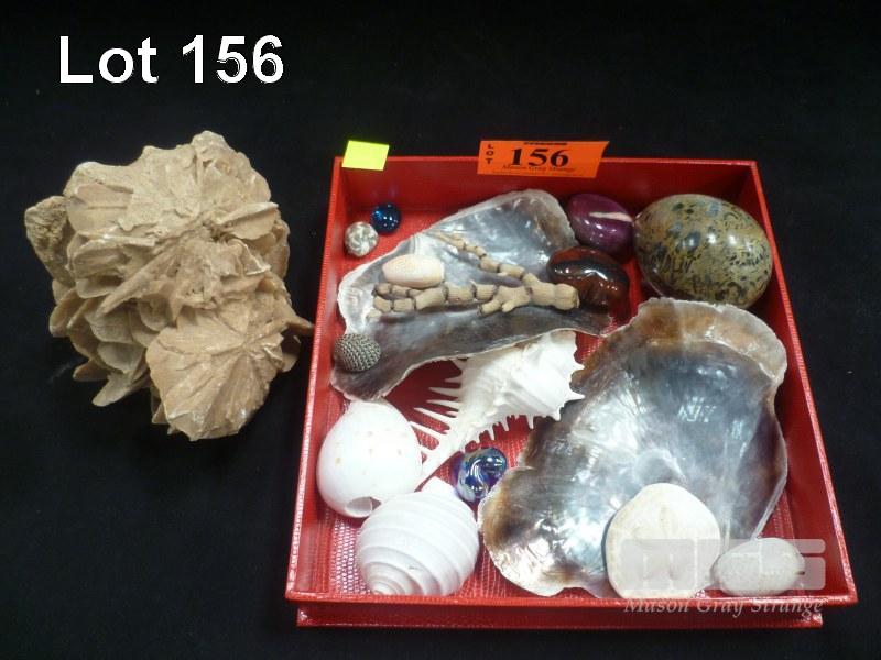 SHELLS, CORALS AND AND LUMP OF RAW DESERT ROSE CRYSTAL
