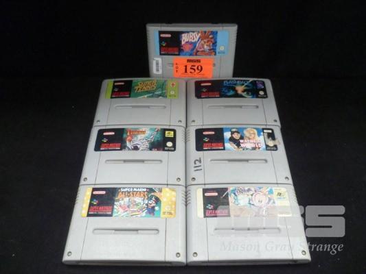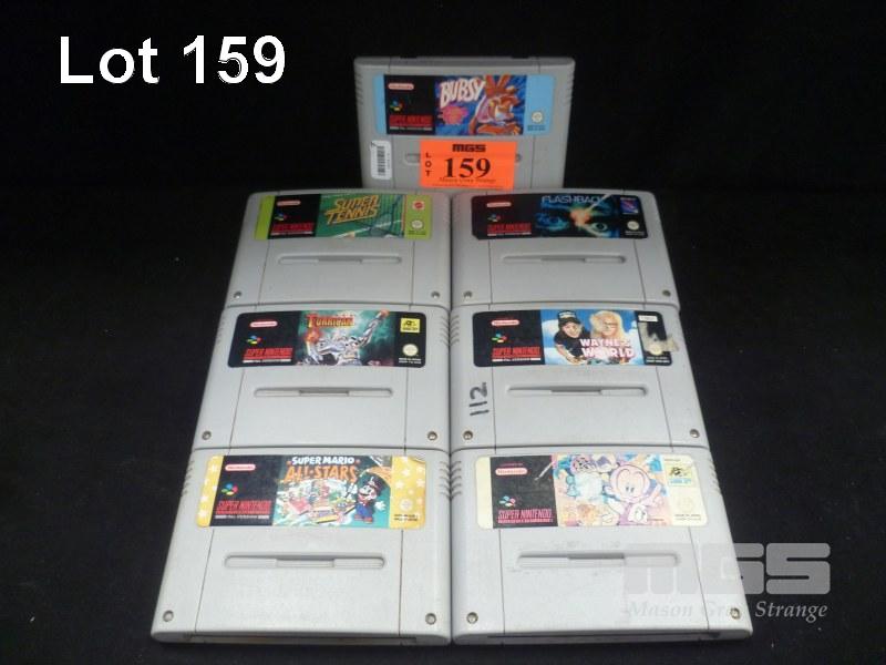 7 x SUPER NINTENDO GAME CARTRIDGES INC TURRICAN, SUPER TENNIS, WAYNE'S WORLD, FLASHBACK, SUPER MARIOS ALL STARS, SUPER BC KID & BUBSY