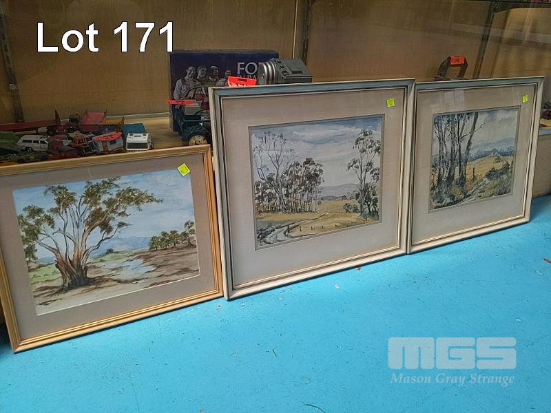 3 x FRAMED WATERCOLOUR PAINTINGS COMPRISING 2 x AUSTRALIAN BUSH SCENES BY "BRIAN L. BATHY" AND AUSTRALIAN BUSH SEEN BY "A. DIGIUSTO"