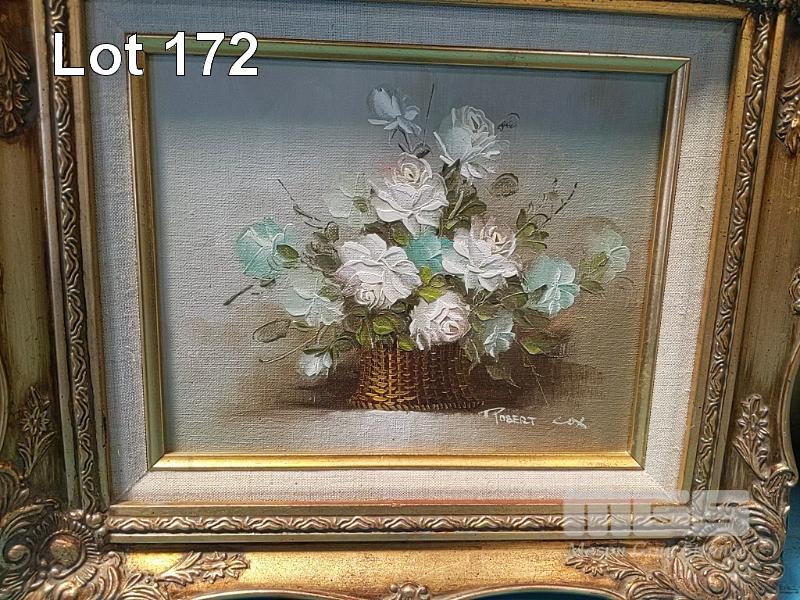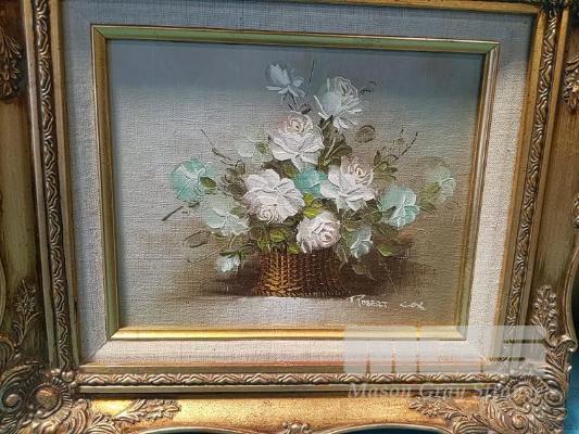 FRAMED ORIGINAL ARTWORK. OIL FLOWERS BY "ROBERT COX"