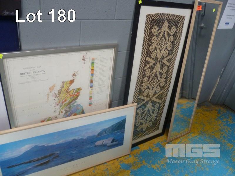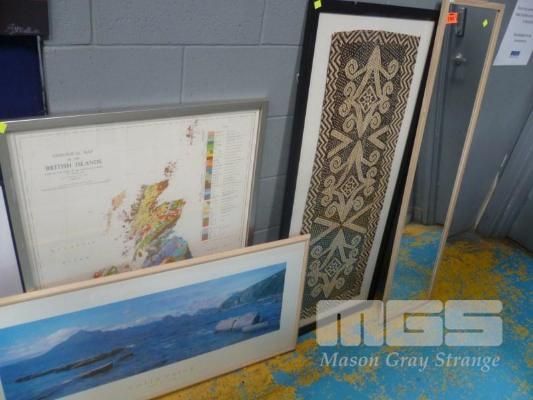 TRADITIONAL WEAVE UNDER GLASS, LONG WALL MIRROR, GEOLOGICAL MAP OF BRITISH ISLES & COLIN PRIOR FRAMED PRINT