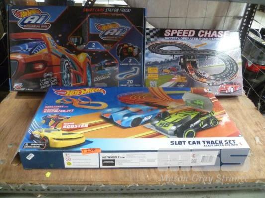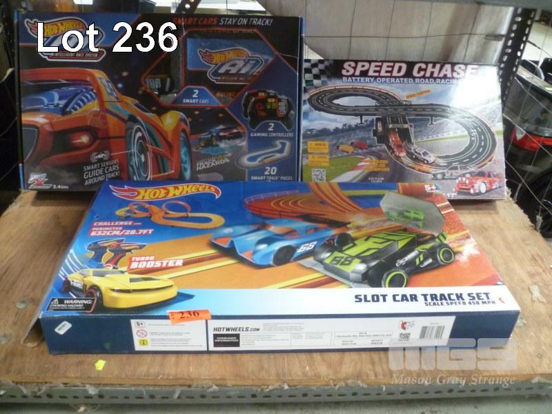 3 x CAR RACING SETS, INC SPEED CHASE, HOT WHEELS SLOT CAR TRACK SET & HOT WHEELS AI INTELLIGENCE RACE SYSTEM